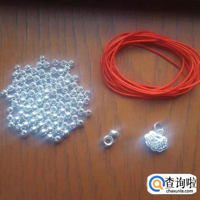备好小珠子和需要1米左右长度的细红线,再加几个需要装饰的配件即可。