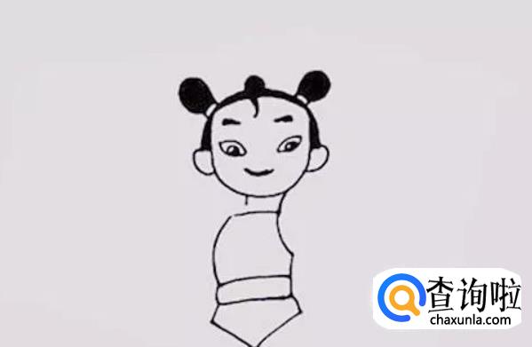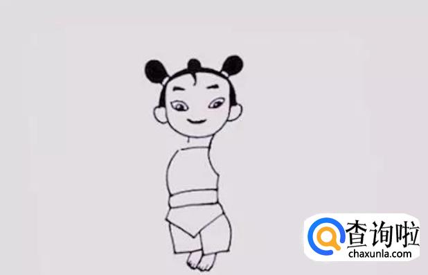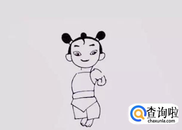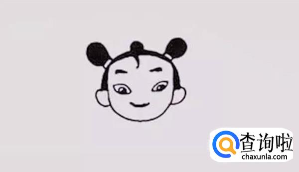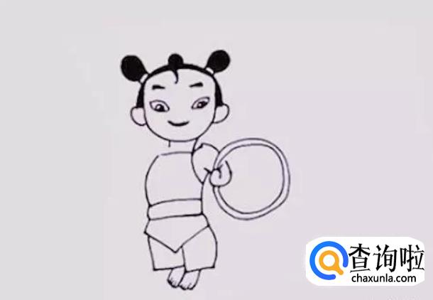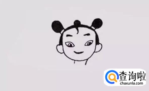画出哪吒头顶两侧的辫子,这是它的个性,也是象征。