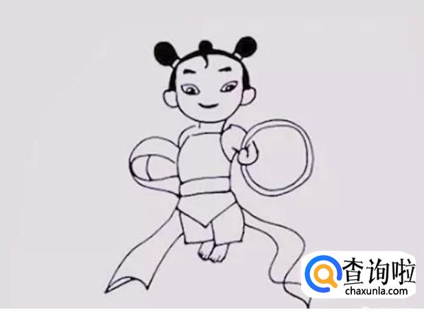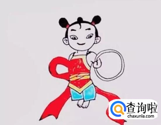 把哪吒长长的混天绫描绘出来,但是要注意它在身体两边的长度。