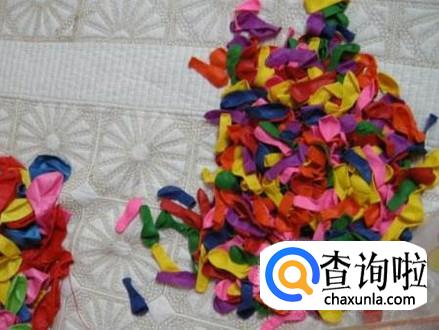 先把气球一个个吹鼓,末端打个结。