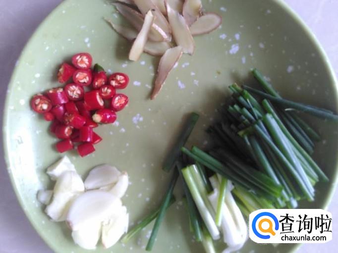 把香葱、小米辣、蒜米、姜片切好。