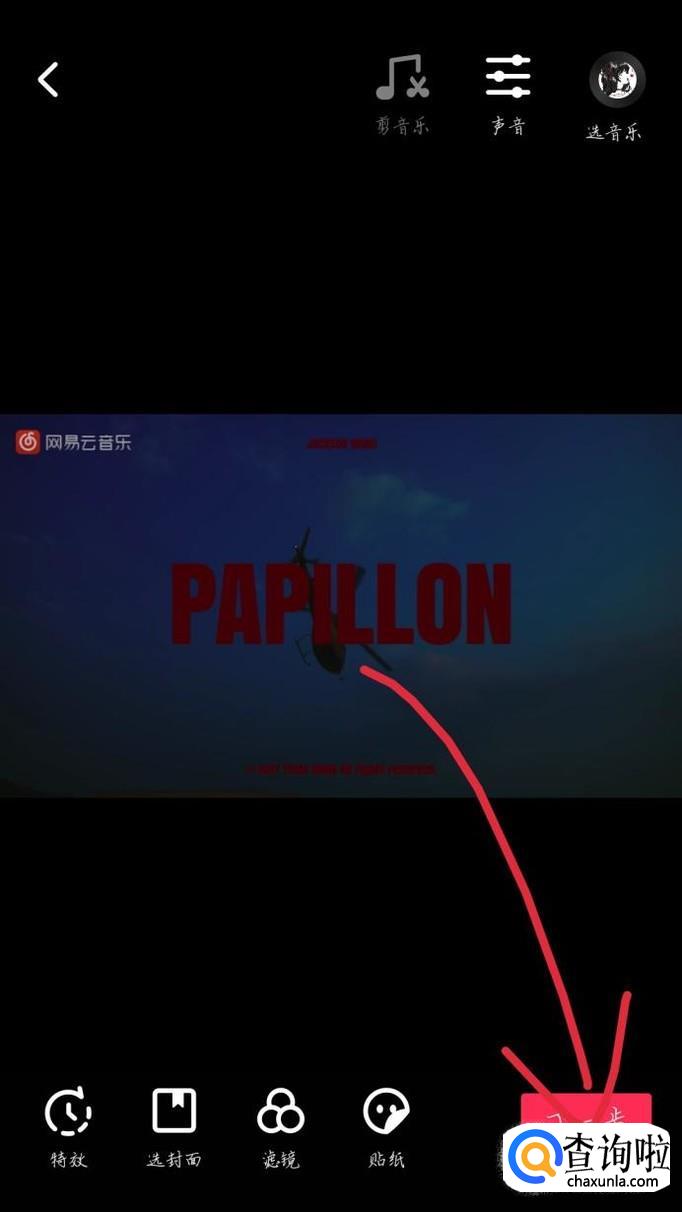 你会看到出现一个新的界面,你可以加滤镜选封面等,完成之后,点击“下一步”选项,如图1箭头所示。