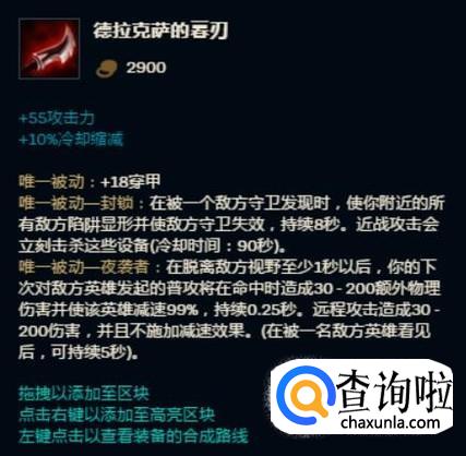 核心装备-暮刃,派克是一个刺客,这件装备输出十分爆炸,破甲和被动都适合他。