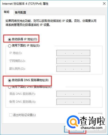 弹出的界面,我们将IP地址和DNS地址都设置为自动获取的形式,之后我们点击确定按钮,然后我们就可以上网了。