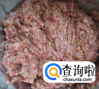 将肥瘦适宜的猪肉洗干净,剁成肉馅,放入一个较大的盆中。