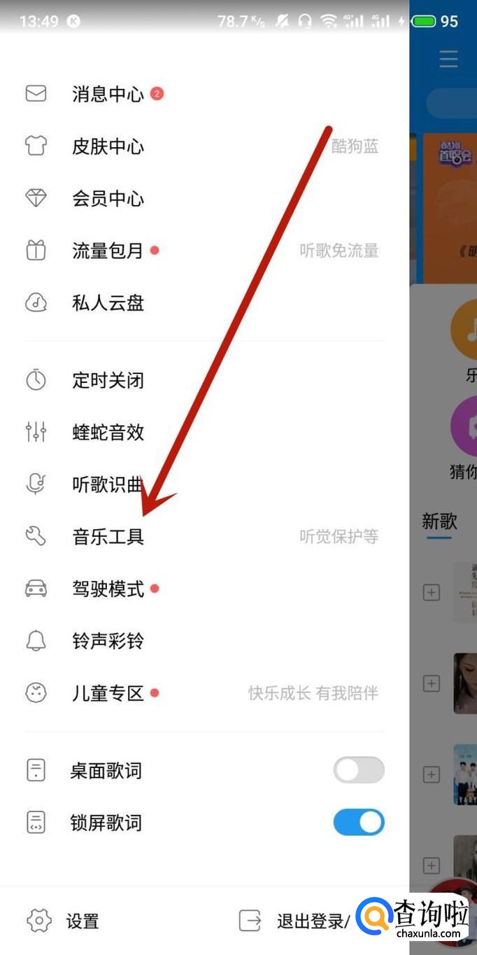 以酷狗音乐为例,其他音乐软件也都有类似功能,操作大同小异。