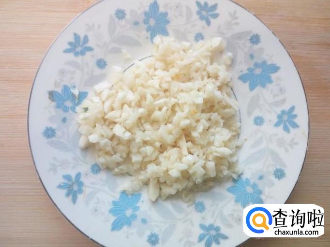 蒜去皮,用水清洗干净,控干水分,切成末。