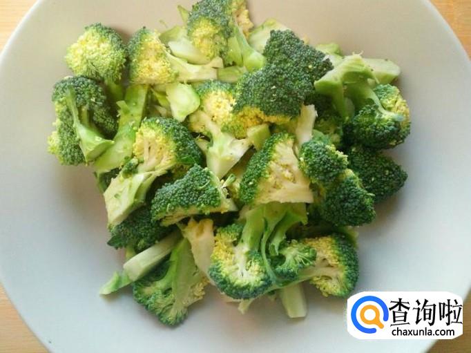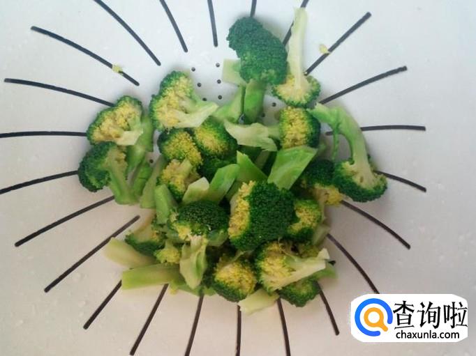 西兰花用水清洗干净,控干水分,切成小朵。