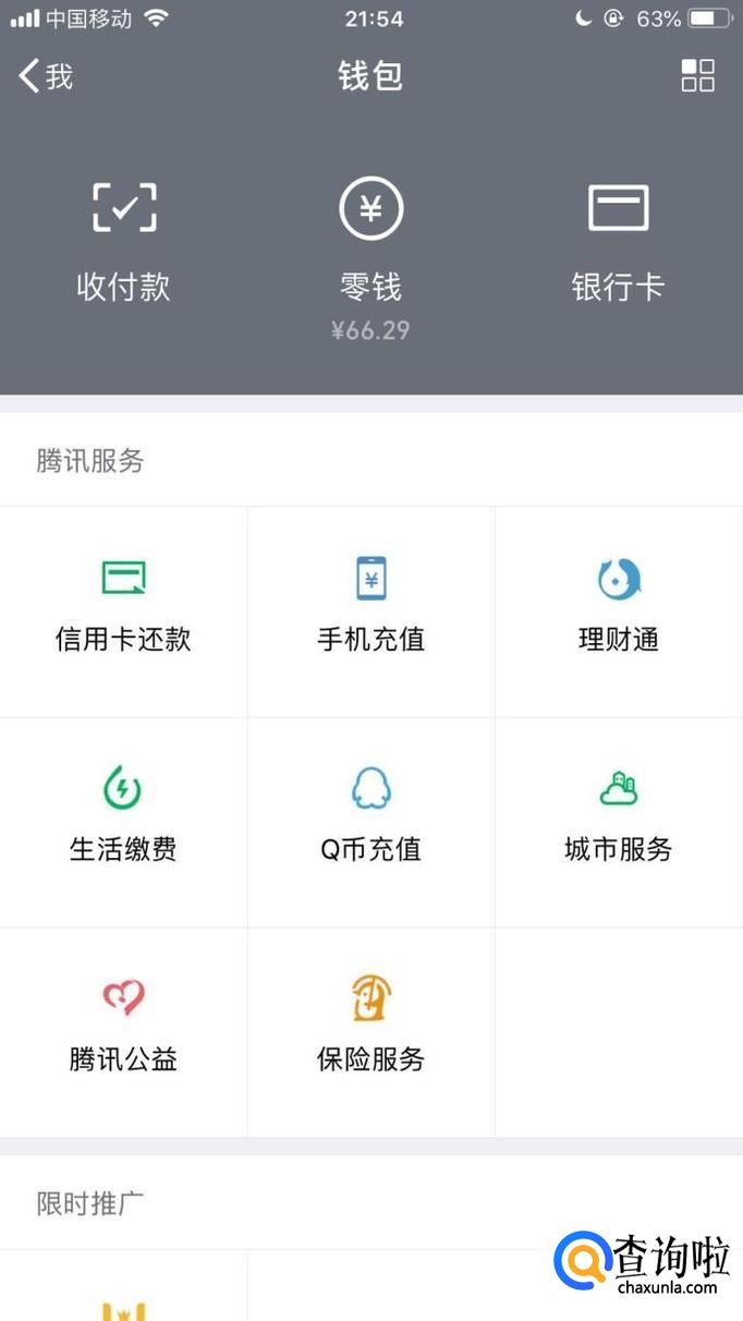 然后点击零钱,如下图所示。