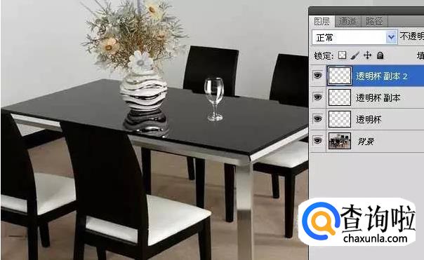 连续按两次Ctrl+J,复制两次“透明杯”图层(目的在于强化玻璃杯),连续按两次Ctrl+E,合并图层。
