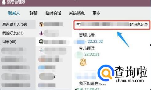 点击消息管理,然后就切换到了“消息管理器”界面,从这里即可看到之前与所有好友包括陌生人的聊天记录了,如图所示...