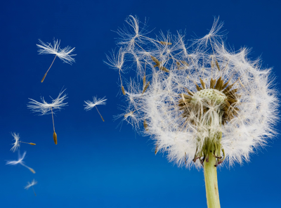 有些种子或果实会长毛或翅膀一样的结构,风一吹就会飘到较远的地方,像蒲公英瘦果上,长了很多长的冠毛,成熟时这些冠毛展开像一把降落伞随风飘扬,把种子散播远方。