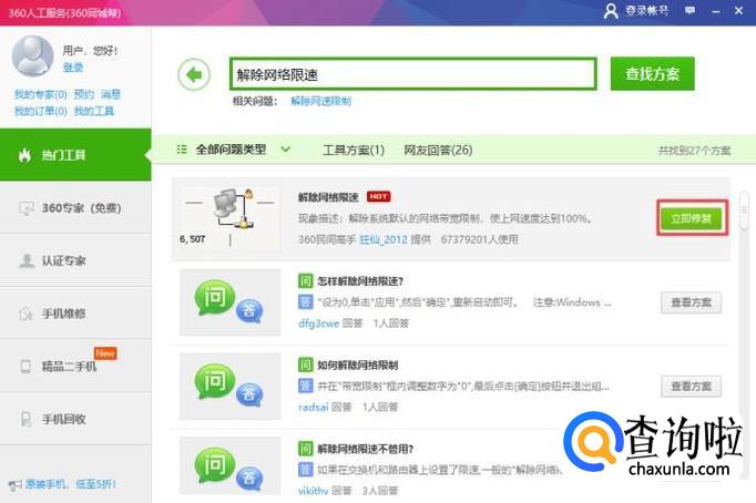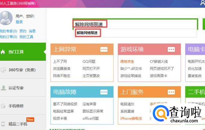 然后我们输入解除网络限速,之后会在下方弹出一个解除网络限速,我们点击它;