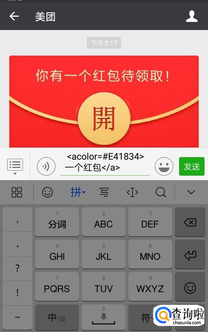 点击联系人头像,进行对话,弹出对话窗口。将上述代码复制 <a color=#E41834> 输入文字</a>