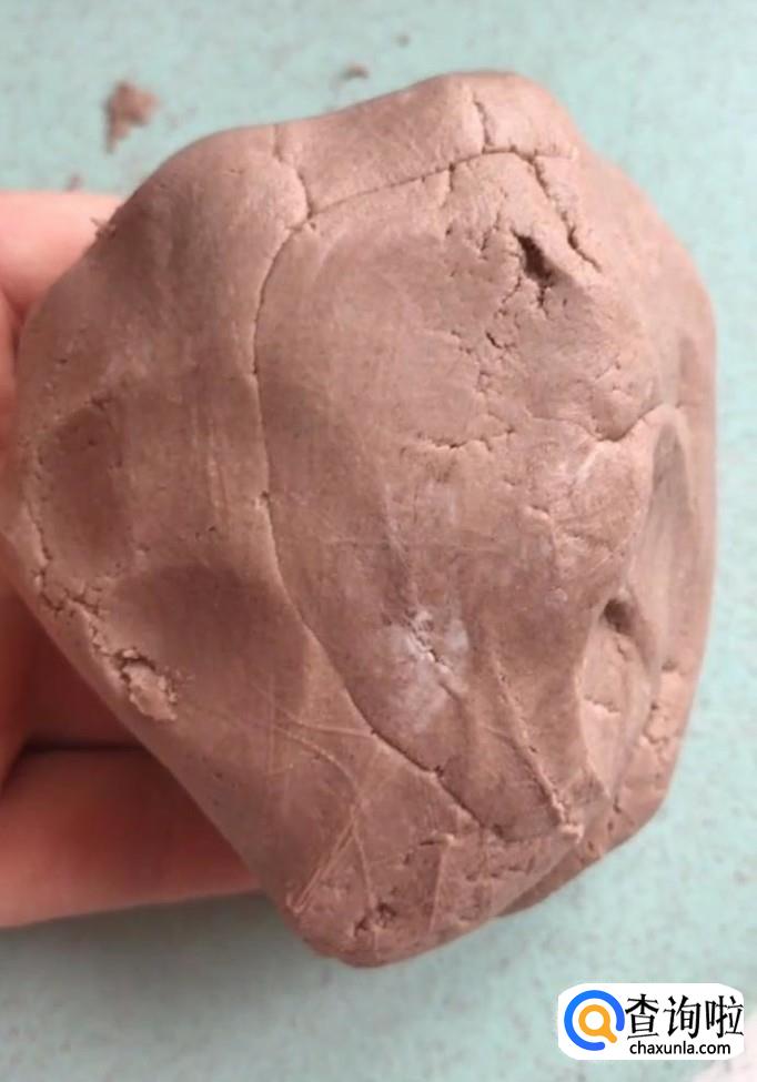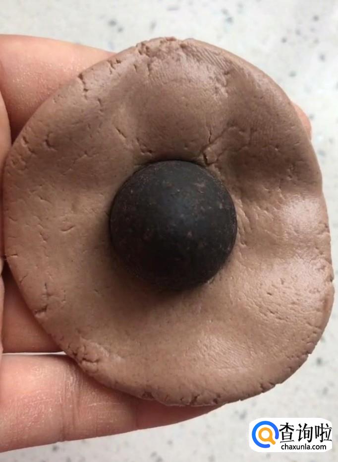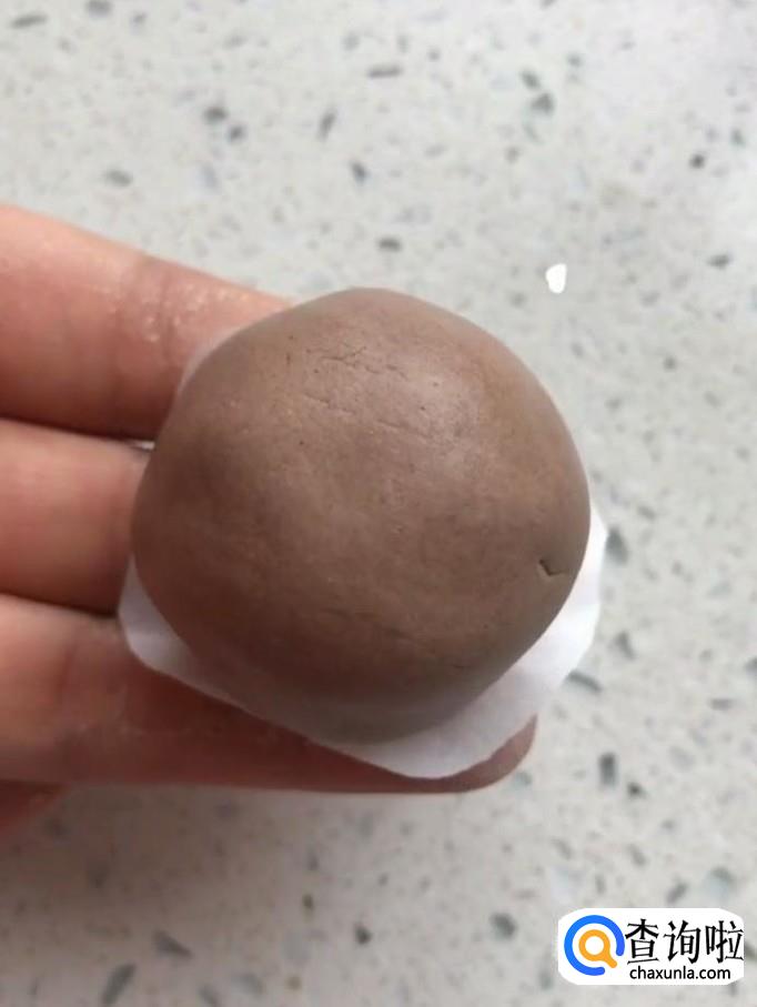 接着我们将面团切成块,用擀面杖擀成皮,包裹上巧克力块