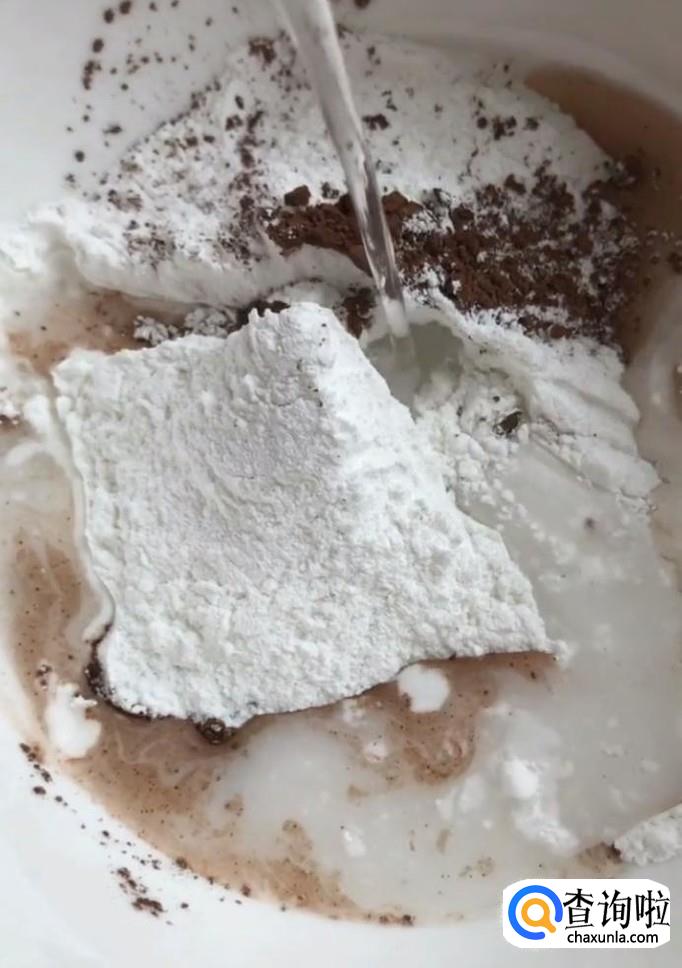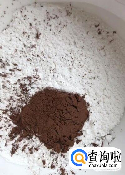 首先我们在碗中倒入适量的糯米粉,再放入一勺的可可粉