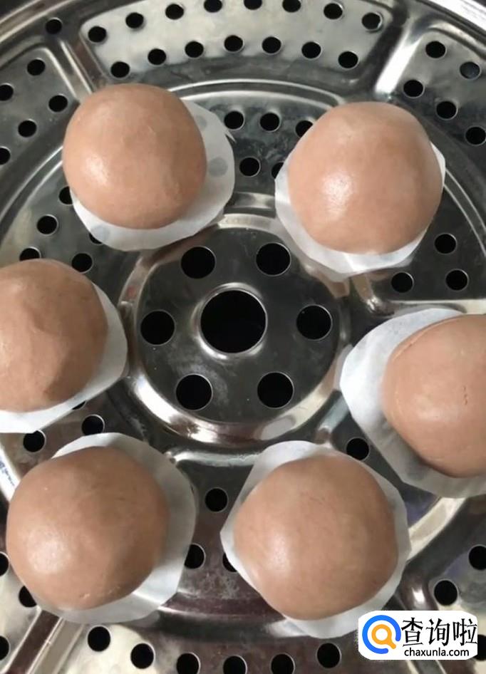 包好以后我们揉成球,底下放一层不粘纸,放入蒸锅中,盖上锅中,小火蒸20分钟