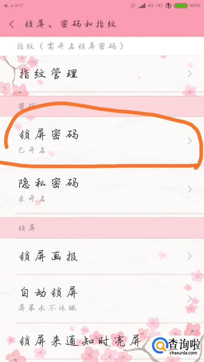 然后点击锁屏密码
