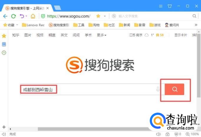 首先,我们打开我们的电脑,然后我们打开我们电脑上面的浏览器,之后我们在搜索引擎中输入成都到西岭雪山,然后我们点击后面的搜索按钮;
