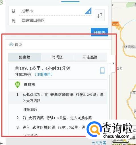 弹出的界面,我们在左边的界面就可以看到详细的路线图了,还是比较远的;