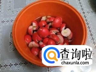 最后把弄好的萝卜放入容器中,调入适量的盐,味精,食醋和少许白砂糖腌制半小时即可食用