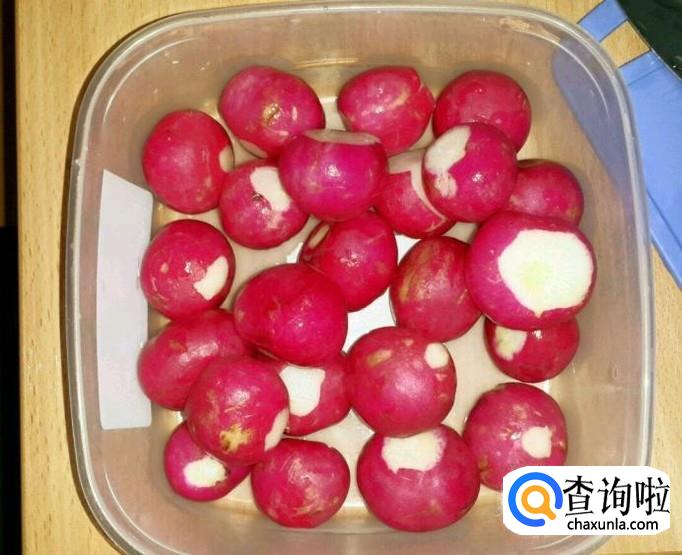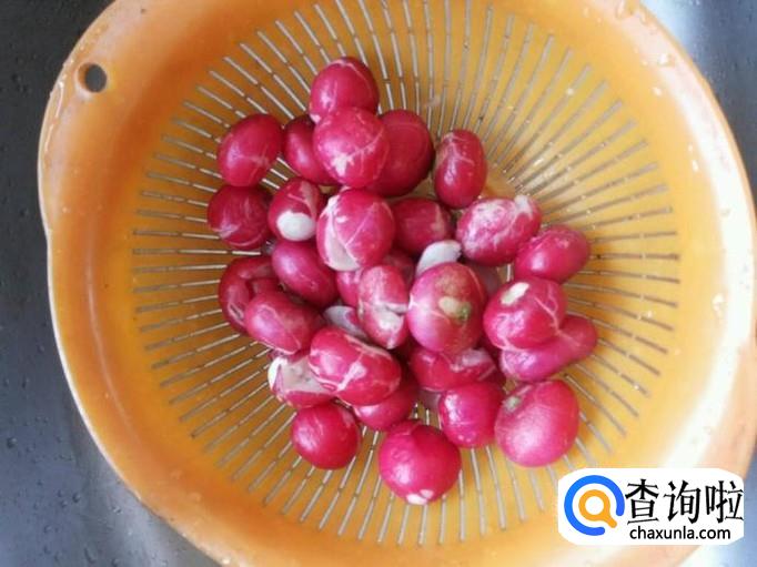 首先我们把水果萝卜的叶子摘去,然后把表皮洗干净后备用
