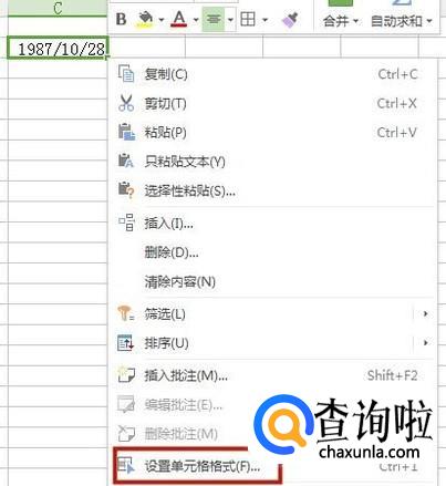 接着右击生日单元格并点击设置单元格格式,如下图所示。
