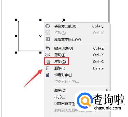 使用矩形工具我们在绘图区里绘制一个矩形,然后将其选择并单击鼠标右键,在右键菜单哪里找到复制选项,如图所示: