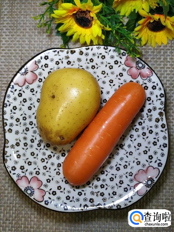 土豆适量,胡萝卜适量,盐适量,番茄酱适量,面粉适量。