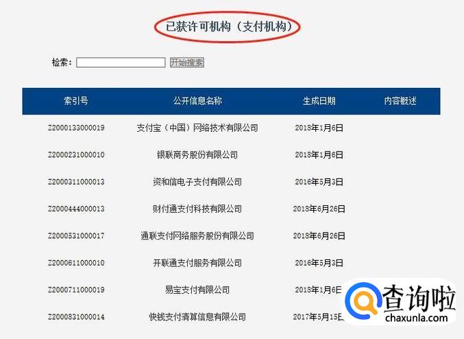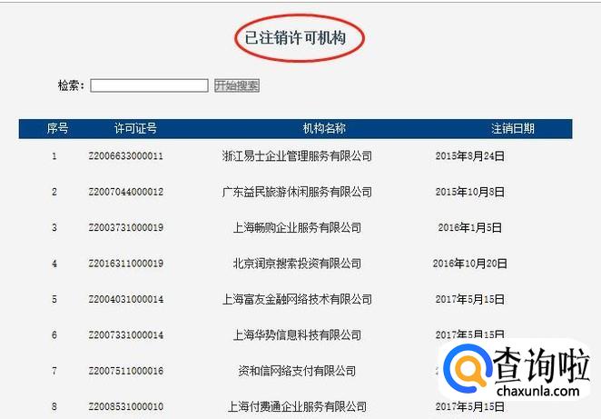 最后,便可以看到《支付业务许可证》,里面可以看到已经获取支付牌照的机构和已经被注销了支付牌照的机构。你可以在搜索栏里查询你想知道的某家公司的支付牌照了。