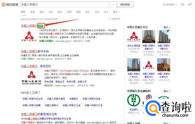 输入中国人民银行,点击搜索,会得到第二个页面,然后点击进入有官网标志的中国人民银行。也可以直接输入这个地址:http://www.pbc.gov.cn/z