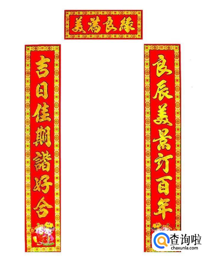 春临大地迎新岁,喜到人间贺吉期。佳偶天成。