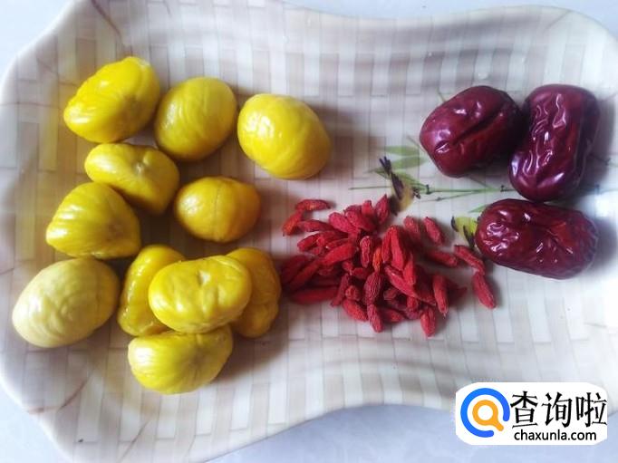 乌鸡100克 ,板栗70克,红枣、枸杞、姜片适量。