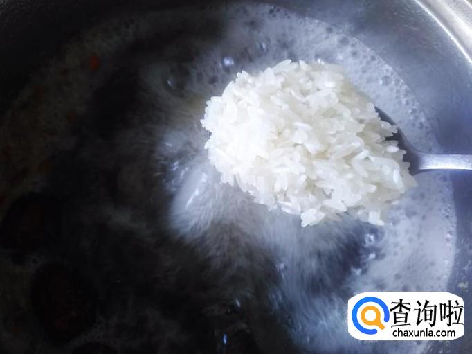 然后打开盖子把泡好的大米放进去,用勺子搅拌一下不给粘底。l