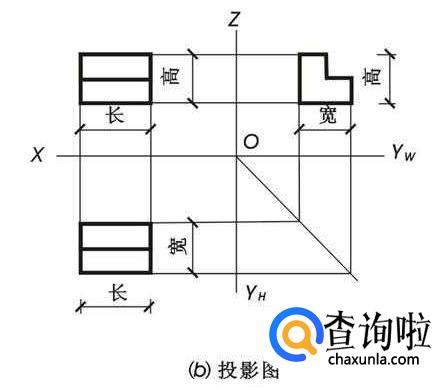3个投影面之间的交线,称为投影轴,分别用Ox,Oy,Oz表示,3根轴的交点,O称为原点。