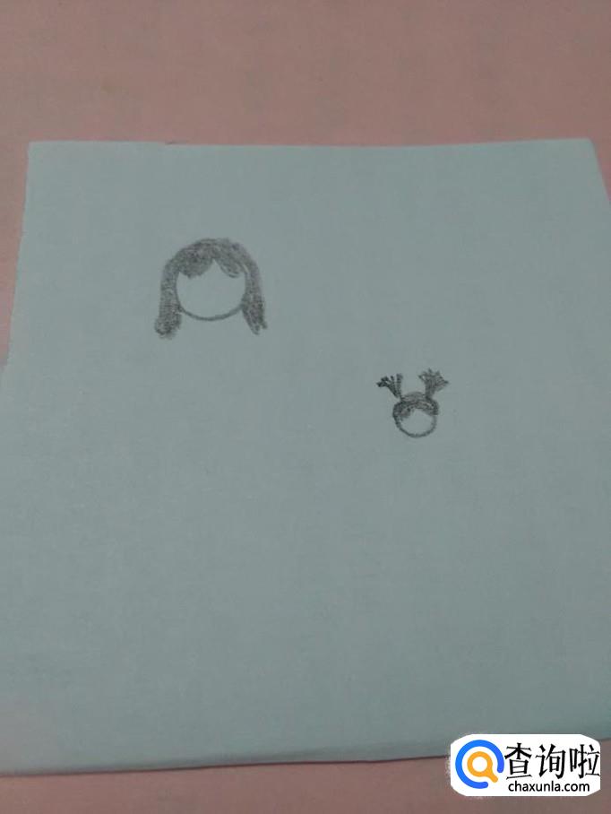先画出妈妈的长头发,再画出小孩的朝天辫,只画几条集中在一起的线,表示小辫。