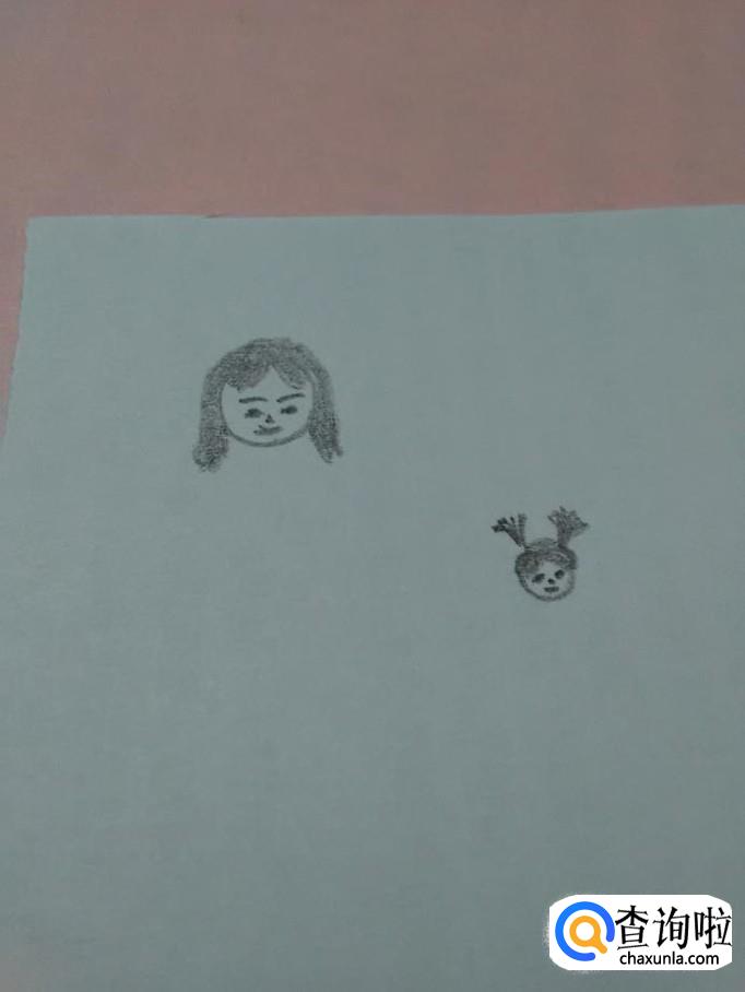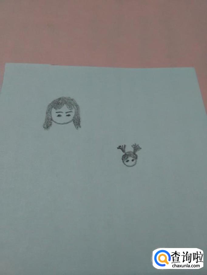 在妈妈的头下,先画两条竖线,表示脖子,在脖子下面,画一个长长的梯形,表示连衣裙,在孩子头下,先画两条竖线,表示脖子,在脖子下面,画一个小梯形,表示连衣裙。