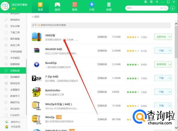 如果您的电脑里有360的话,应该会有360软件管家,在里面下载360压缩。