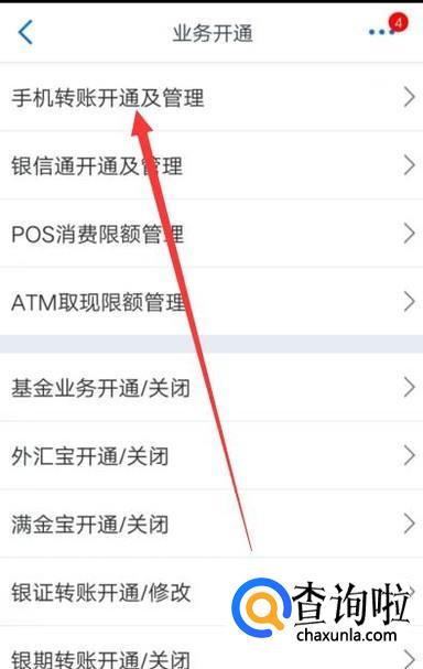 进入之后,点击“手机转账开通及管理”,如图所示。