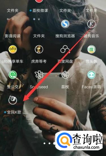 打开手机,找到全民K歌,点击并进入,如图所示。