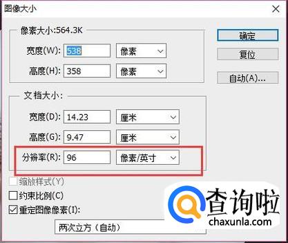 接着,我们就来到了图像大小的设置界面,如图所示,默认分辨率为96。