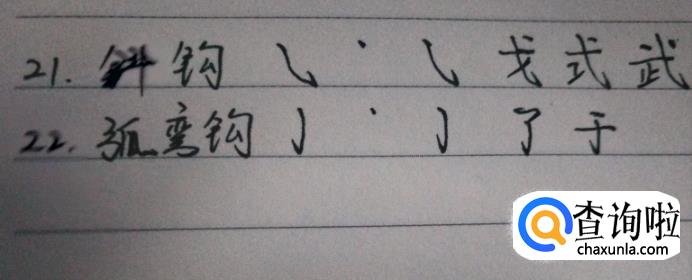 然后就是斜钩,这个笔画的方法就是要挺直一点,拐大弯,且不能太弯曲。在练习时要注意起笔和收笔要在同一条垂直线上,弧度不能过大哦。