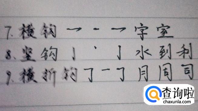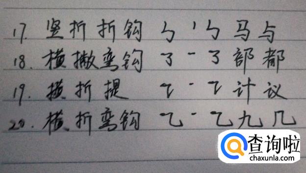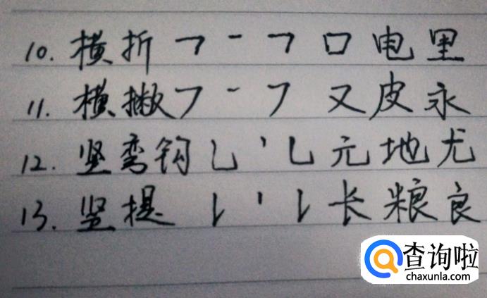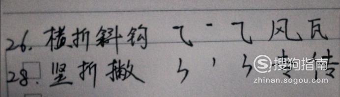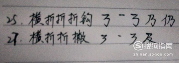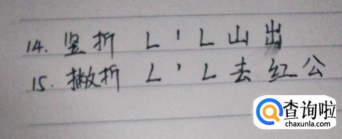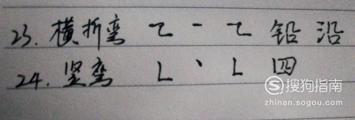 然后就是竖折、撇折,这两个笔画由于有点形似,所以比较容易写错,注意一下,竖折的竖笔是稍微往左下方倾斜一点,撇折的撇笔倾斜的程度要大很多,要知道竖折和撇折是不一样的哦。