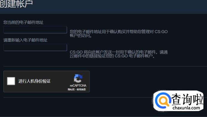 进入登录页面,如果没有STEAM账号的话,需要创建一个新账号,输入邮箱,在邮箱中进行操作,自定义自己的账号信息: