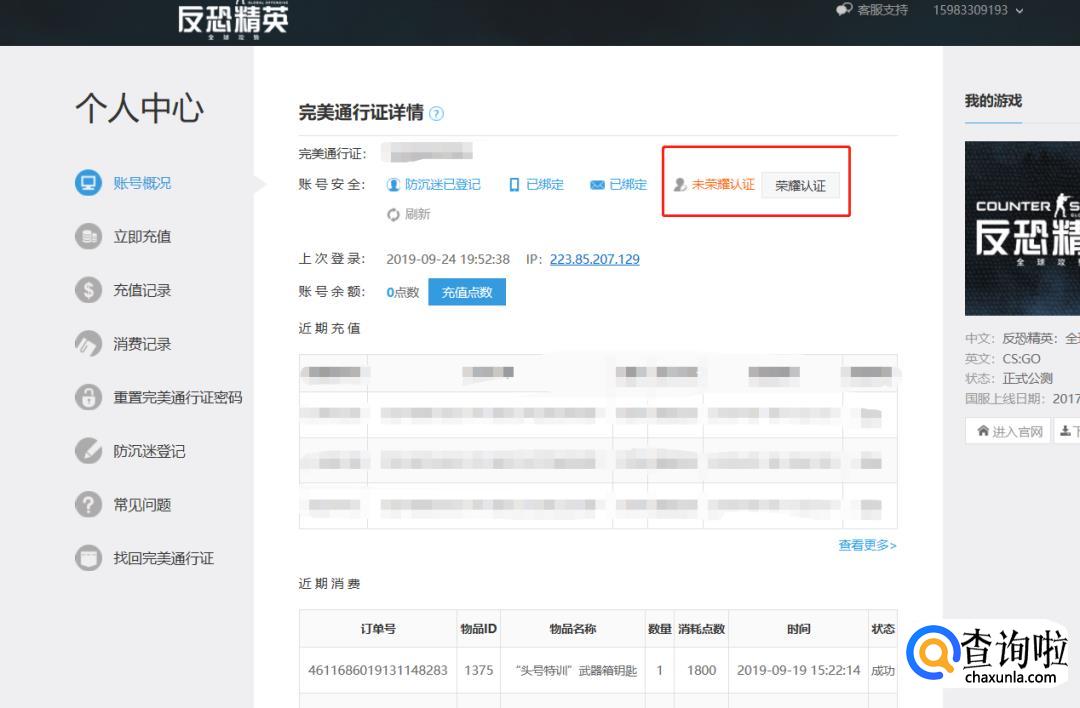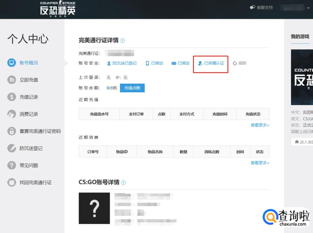 注册完毕后重新登陆,进入个人页面,绑定好自己的邮箱,手机号,身份证信息等,现在就之差【荣耀认证】了: