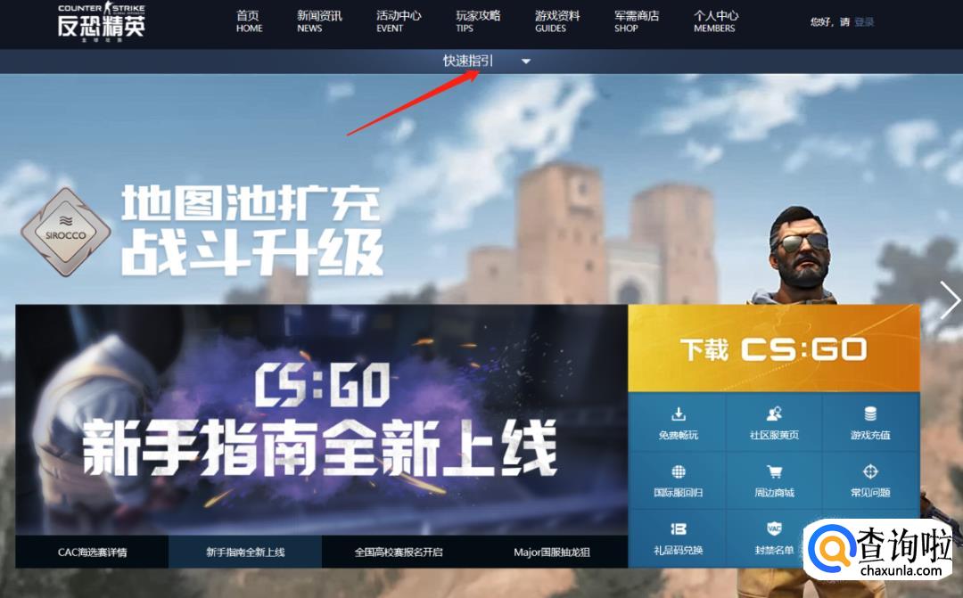 打开电脑浏览器在网址栏输入:https://www.csgo.com.cn/main.html,进入CSGO国服官方网站: