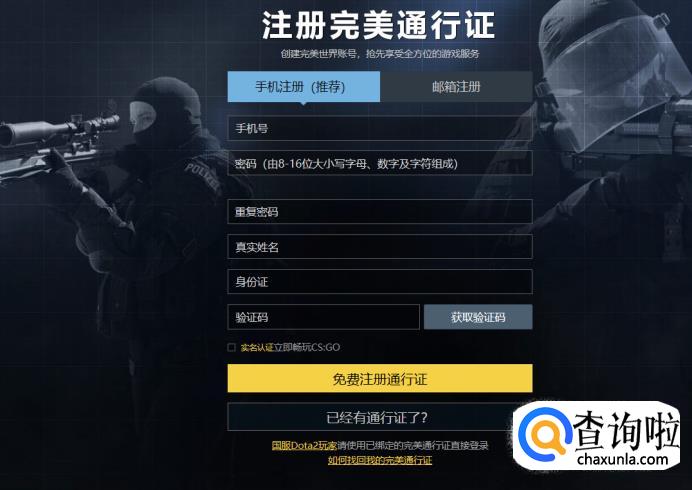 注册完美世界账号: