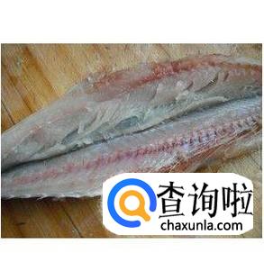 鲅鱼洗净,从腹部将其切开,去除它的内脏,再用热水将其腹部冲洗干净。