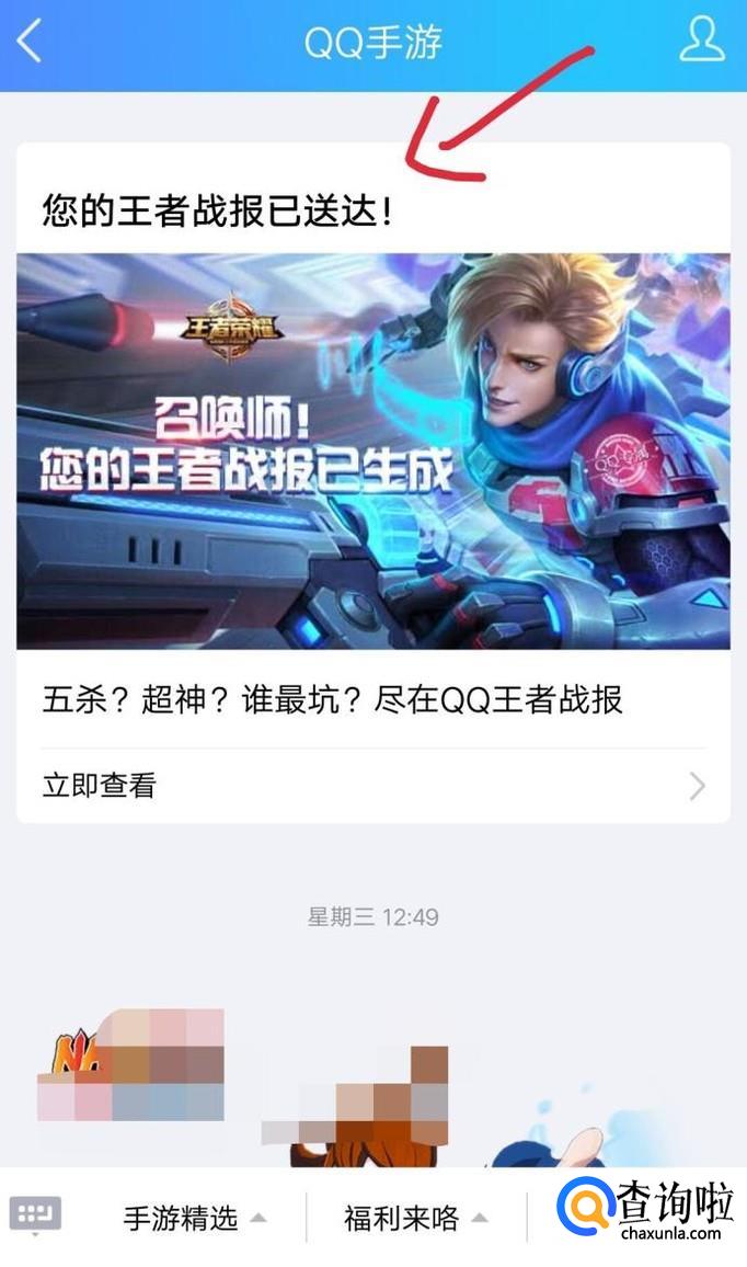 进入公众号以后点击“你的王者战报已送到”,如下图。