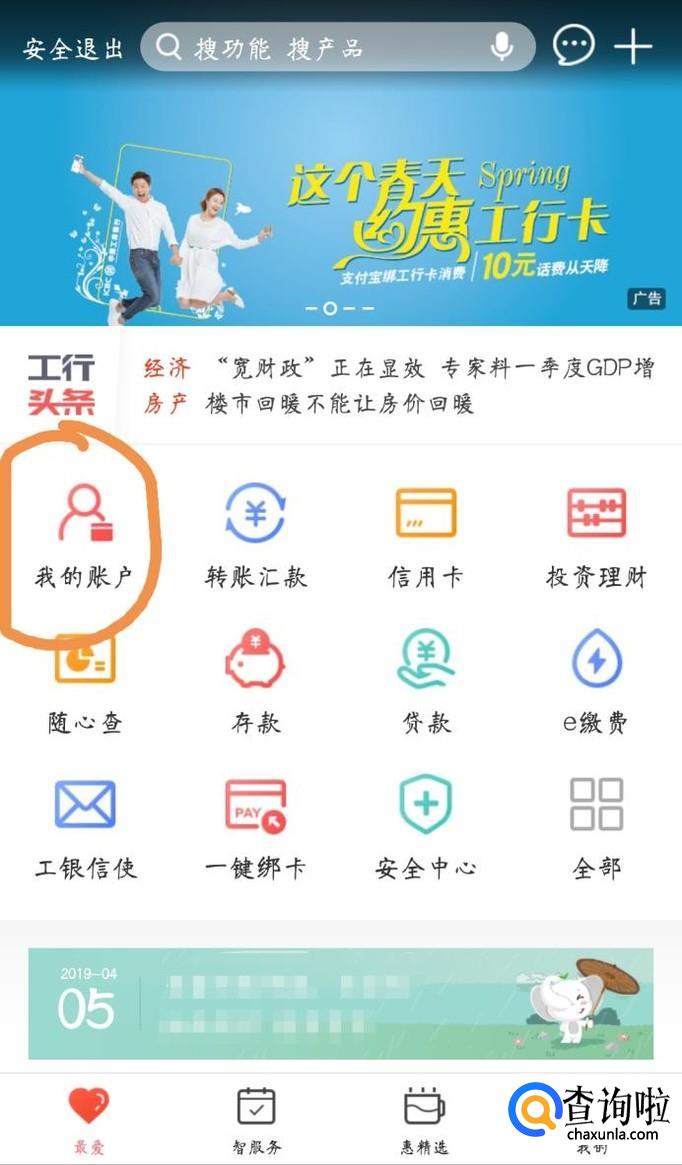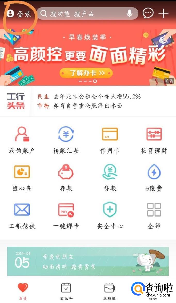 首先在应用市场下载并安装一个中国工商银行的手机APP,然后打开